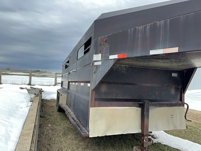 20ft Gooseneck Stock Trailer Tires are good Used very little last eight years Floor excellent Centre divider gate Spare tire Height: 6'8" 80 inches from floor to roof, it is 7 feet wide as well.