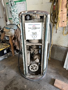 Good Gulf Gilbarco fuel pump 1 1946 Good Gulf antique gas pump ,"very rare"!, Ernie was using it , works , approx 5 ft talll, glass all original not broken .Would be a great restore for shop .